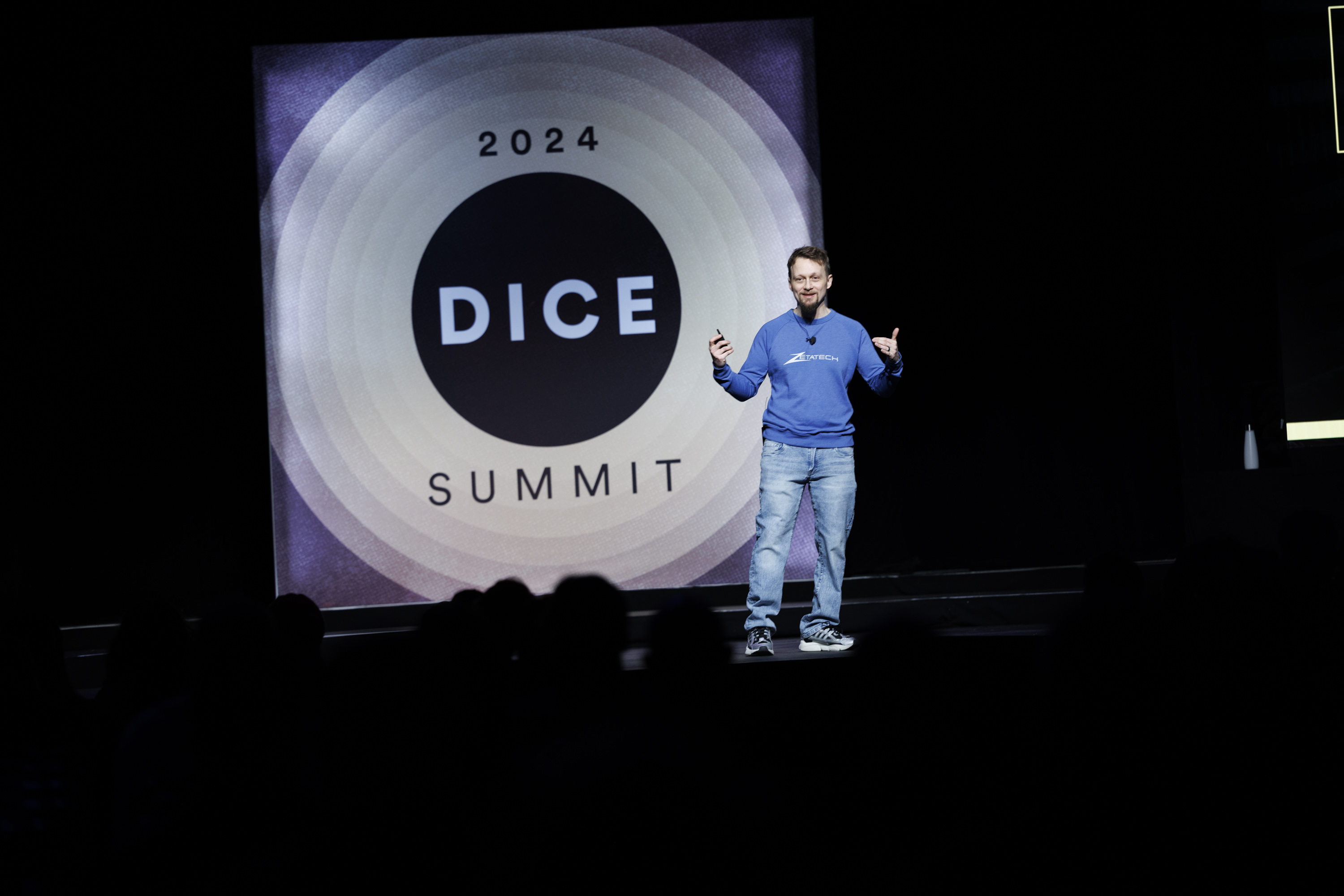 在週三上午的開幕致辭中,組織DICE的互動藝術與科學學院(AIAS)的總裁Meggan Scavio承認了艱難的一年。她介紹了會議的主題和發言人,然後提到了其中一個項目未能獲得資金,並表示任何有興趣的潛在贊助商都應該與他們聯繫。