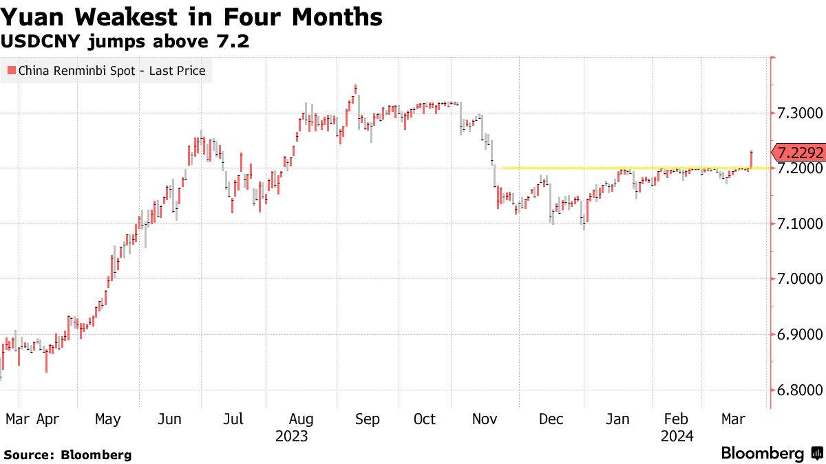 交易員將密切關注中國週一的人民幣匯率日間定價,此前該貨幣在上週末下跌超過兩個月來最多。當局設定了低於預期的定價,引發了他們可能容忍進一步貶值的猜測。中國國務院總理李強淡化了投資者對經濟面臨挑戰的擔憂,表示北京正在加大政策支持以刺激增長,正在解決系統性風險。