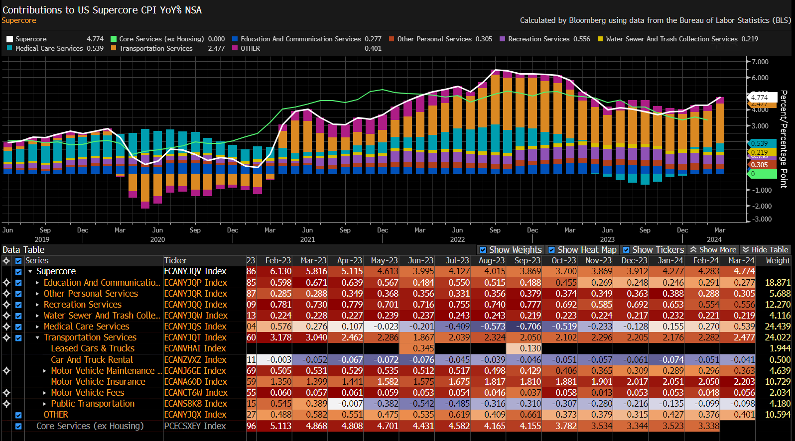 這是我從我們的同事邁克爾·麥克多諾那裏找到的一張圖表,他是彭博社金融產品的首席經濟學家。它顯示了所謂的“超級核心”通脹——即從消費者價格指數中剔除能源、核心商品和住房成本。它的年增長率接近4.8%。對於那些有終端的人,這張圖表是使用ECAN功能製作的。