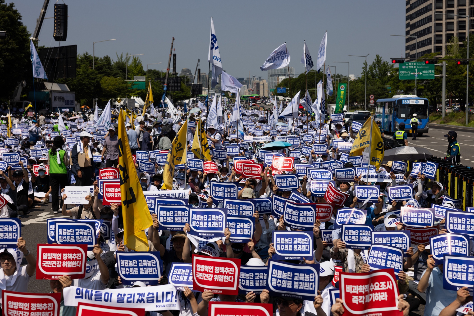 政府已經實施了計劃,允許更多學生從下一個學年開始入學。該國大部分的1.3萬名實習醫生——他們經常在急救護理和手術中發揮關鍵作用——首先舉行了罷工,然後數百名主要醫院集團的醫生於6月17日開始無限期罷工。這種混亂迫使患者推遲手術,嘗試遠程醫療,並前往當地診所而不是急診室。政府已允許護士承擔更多任務,向公眾開放軍事醫院的急診病房,並將一些在軍隊服役的醫生部署到民用設施。