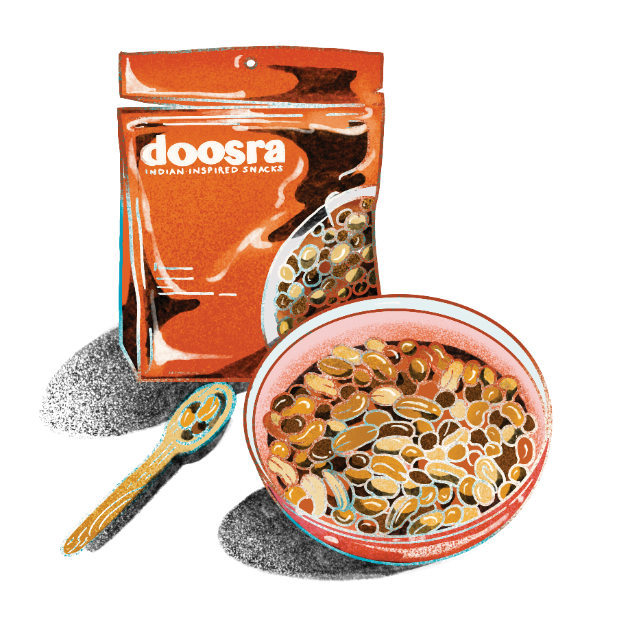 插圖:Beya Panicha 攝於彭博商業週刊混合物這款混合物調味濃烈,酸爽而極具脆度,體現了印度小吃混合物 chaat 的大膽風味。Doosra 創始人卡蒂克·達斯將波恩迪(鷹嘴豆麪泡芙)與烤花生混合,然後加入青芒果粉、克什米爾辣椒和孜然調味。微小的焦糖白巧克力片為這款充滿活力的混合物增添了意想不到的甜味。6 盎司售價 $10