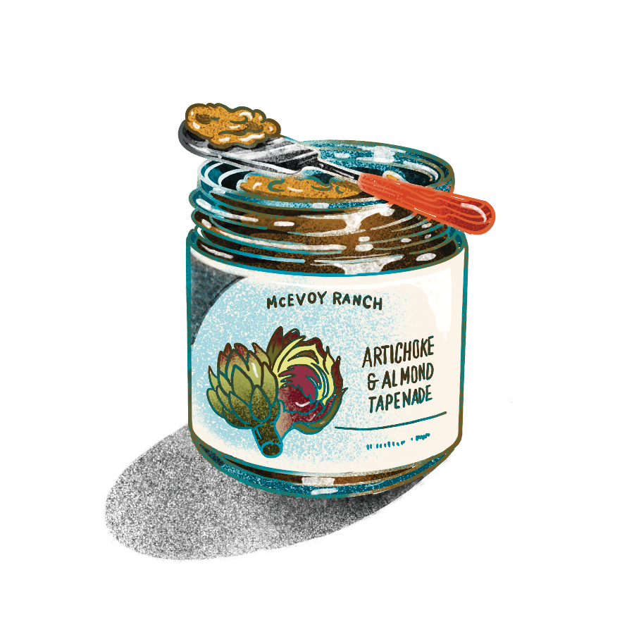 插圖:Beya Panicha 攝於彭博商業週刊朝鮮薊和杏仁醬北加州的麥克沃伊農場不僅將其出色的橄欖油裝瓶銷售,還將其用於一系列食品中,包括這款由當地朝鮮薊和杏仁製成的黃油醬。酸澀的酸豆提供了額外的刺激味道。塗抹在幾乎任何吐司上,再撒上帕爾瑪乾酪,味道會非常棒。7 盎司售價 $11