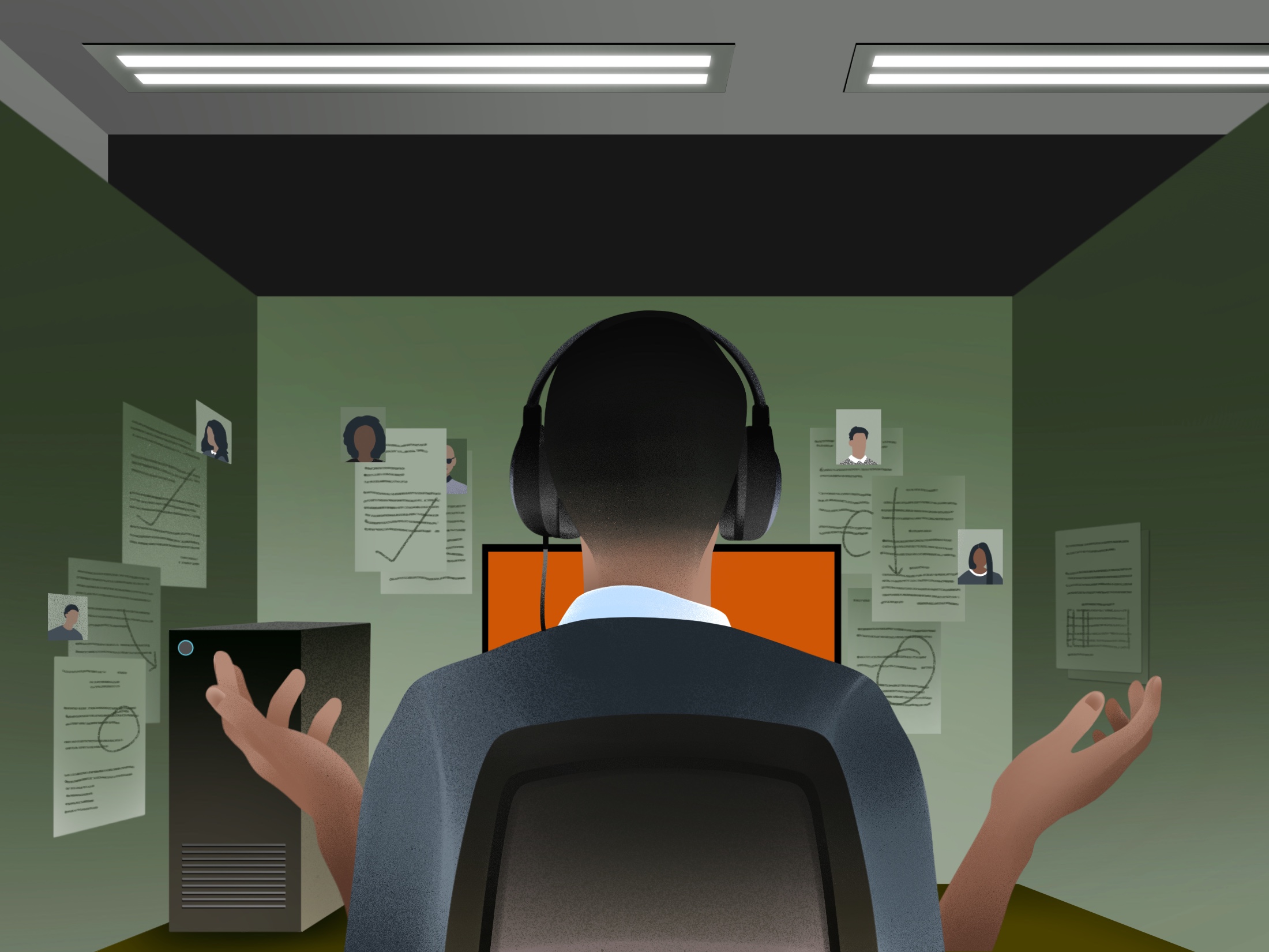 插圖:Ard Su for Bloomberg Businessweek儘管美國檢察官將沙隆描繪為一個模範合作者,但在歐洲數百頁的調查文件和證據中,出現了完全不同的畫面。通過查封沙隆在歐洲涉嫌犯罪夥伴的手機、電腦和服務器,調查人員進入了數月的短信和數字聊天記錄,顯示這位美國合作者與競爭對手爭吵,算賬,並確保他從一項大規模且持續進行的犯罪行動中獲得他應得的利潤。