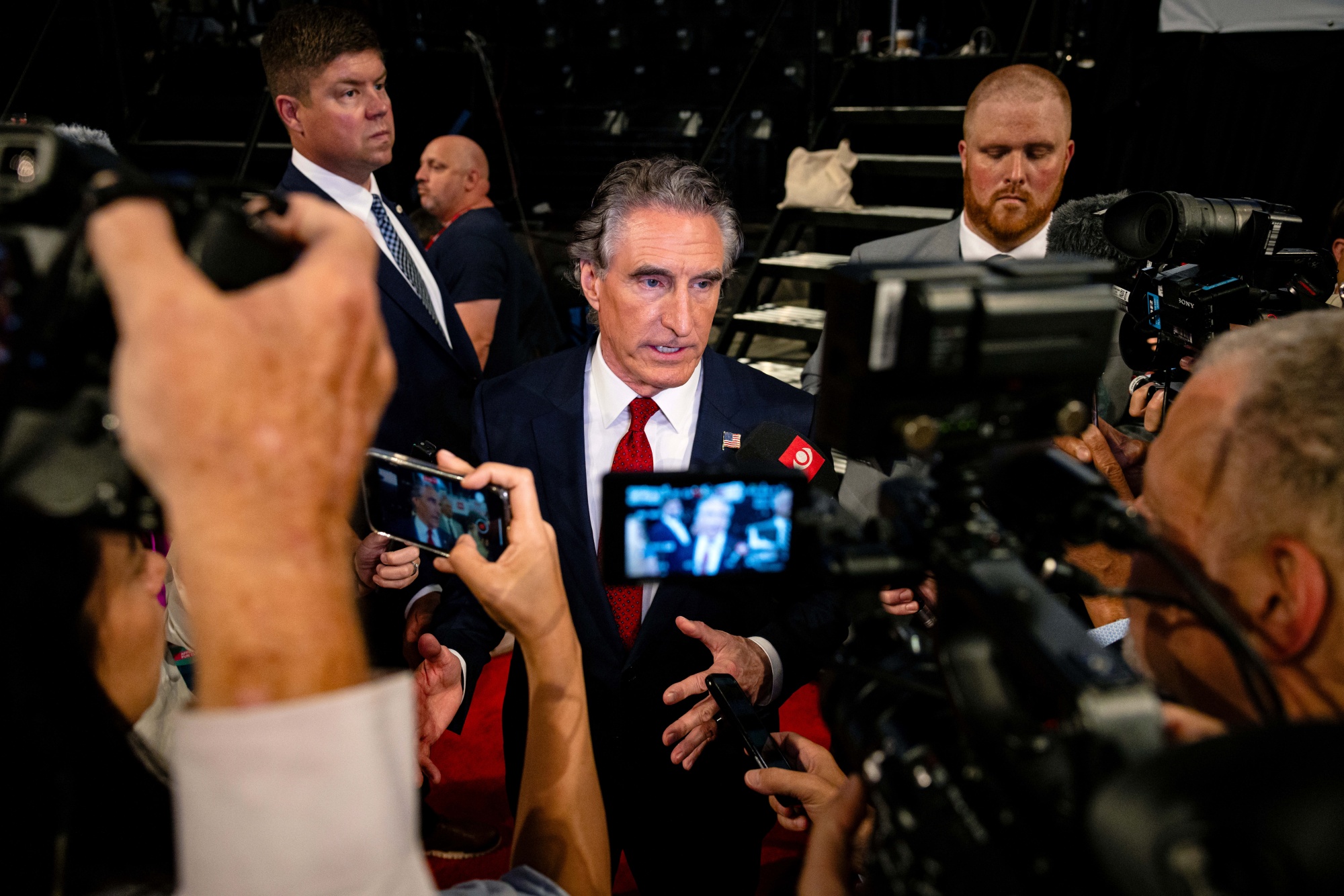 道格·伯格姆在第一次總統辯論後接受媒體採訪。攝影師:伊娃·瑪麗·烏茲卡特吉/彭博社北達科他州州長如此備受青睞標誌着他政治命運的非凡轉變。特朗普曾經稱他為“達德”·伯格姆,現在似乎尊重他。伯格姆在全國各地為這位前總統競選,特朗普在活動中向他求助提供能源政策的細節。