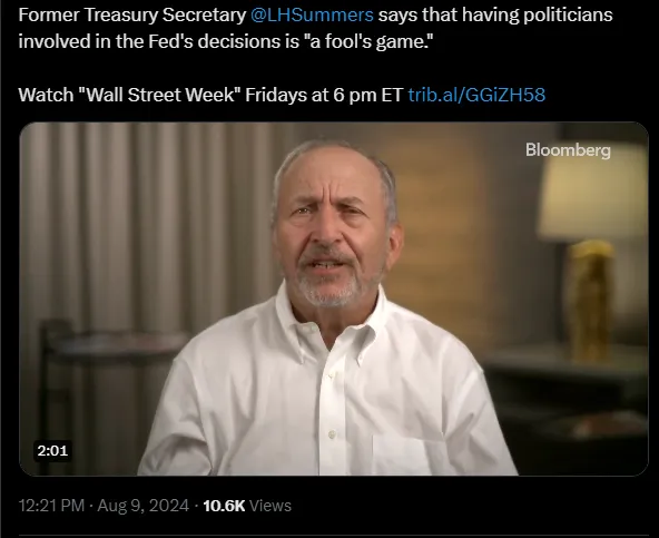 薩默斯:‘愚蠢的遊戲’讓政治家制定貨幣政策