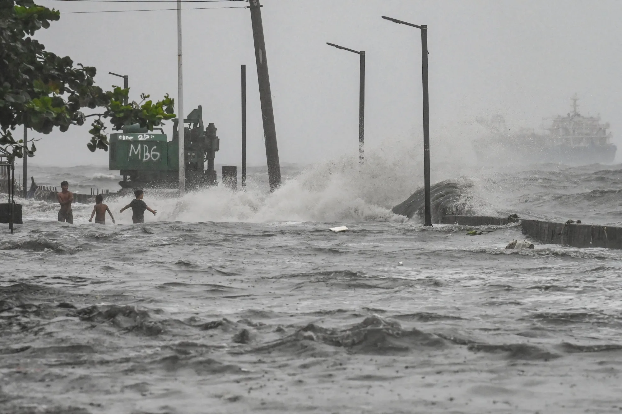 在9月2日熱帶風暴雅吉帶來的大雨中,馬尼拉灣的風暴潮。攝影師:Jam Sta Rosa/法新社/Getty Images### 現在防風暴