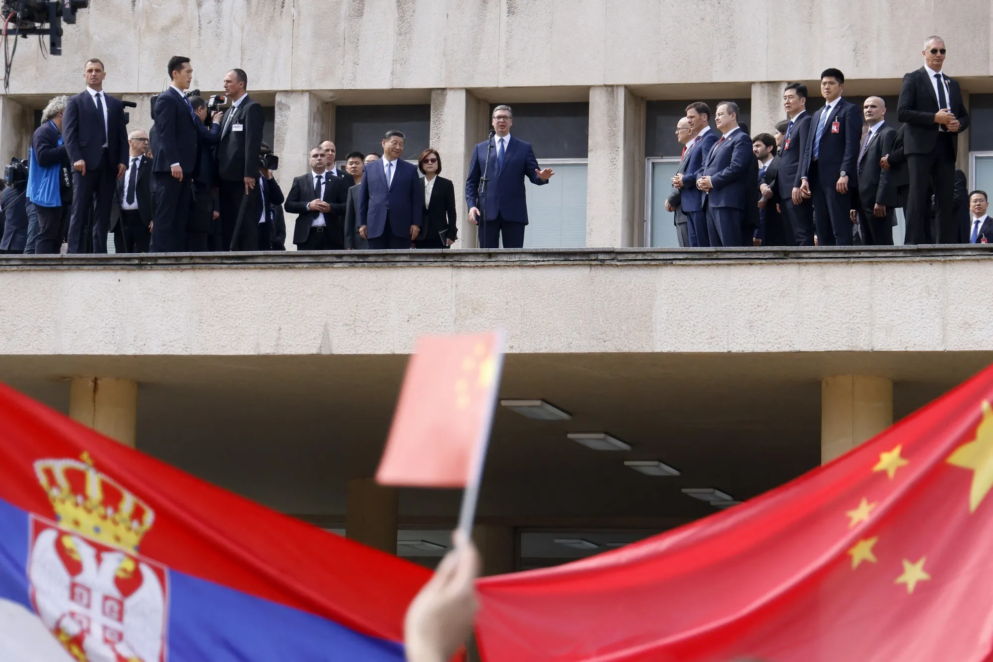 亞歷山大·武契奇與中國國家主席習近平在塞爾維亞宮前向聚集的人們發表講話