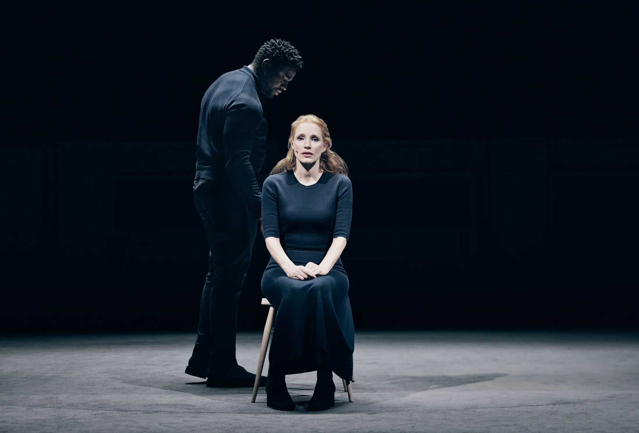 傑西卡·查斯坦在 *玩偶之家。*攝影師:傑米·勞埃德公司**你為什麼這麼喜歡做莎士比亞的作品?**從莎士比亞那裏可以學到很多東西,關於人類思想和人類經驗的偉大教導。而且這很上癮,因為你必須去解讀它,去解碼它。