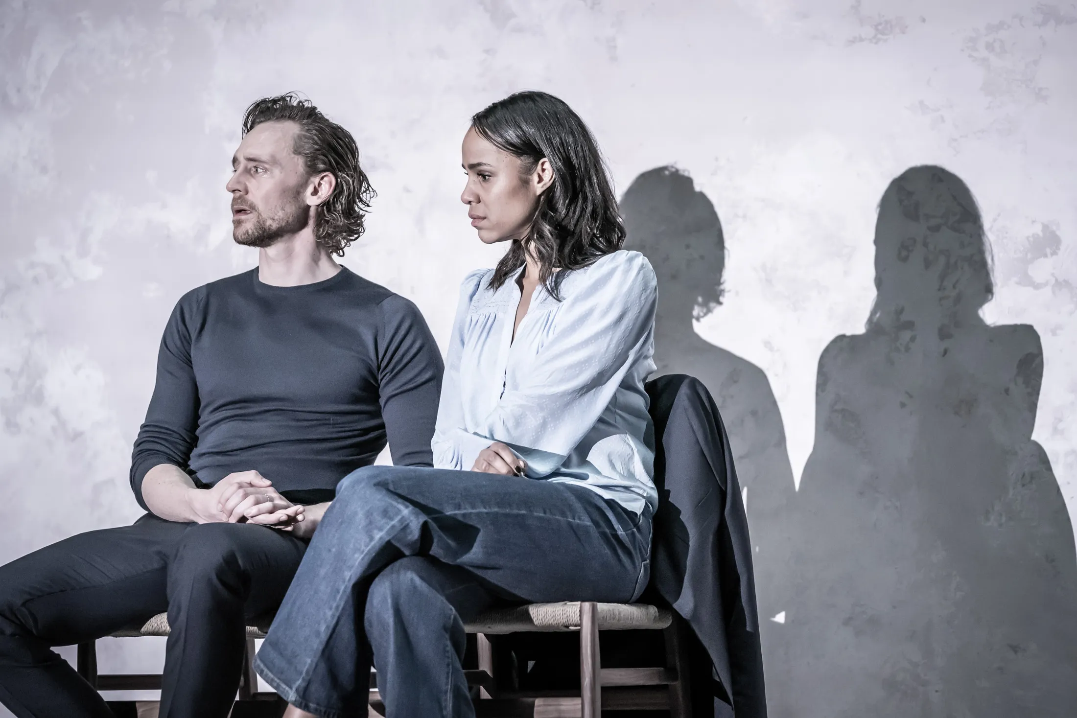 湯姆·希德勒斯頓和扎維·阿什頓在 *背叛。*攝影師:馬克·布倫納你非常擅長使用最小的動作甚至道具來產生巨大的差異。在 玩偶之家中,是一把椅子,一個圓圈,一扇門。在 背叛**中,是一個孩子的無聲出現。然後你也非常擅長那些巨大的時刻。當屏幕在這個節目中降下,帶有日落大道的標誌時。你在創造那些場景或小瞬間時是從視覺開始的嗎?還是説這是一個對話?**在這個情況下,這是對音樂的想象性反應,這就是我喜歡做音樂劇的原因。通常在聽歌時,會有圖像浮現在腦海中,或者會有需要打動的東西。所以例如,在第二部分有一個時刻,屏幕變紅。我從不談論為什麼,因為這對許多人來説意味着許多不同的事情。我知道它為什麼這樣,但那也是對聽音樂的非常直接的反應。那個圖像浮現在腦海中。