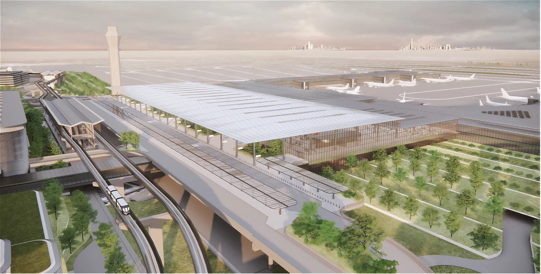 新長期計劃佈局的鳥瞰圖。來源:紐約和新澤西港務局紐瓦克自由國際機場正在進行其航站樓、空中列車和停車設施的重大改造,紐約和新澤西港務局週四宣佈。