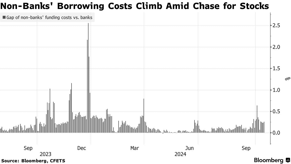 這擴大了非銀行金融機構與銀行之間的融資成本差距。該差距在10月9日上升至六個月高點後仍然保持較大。