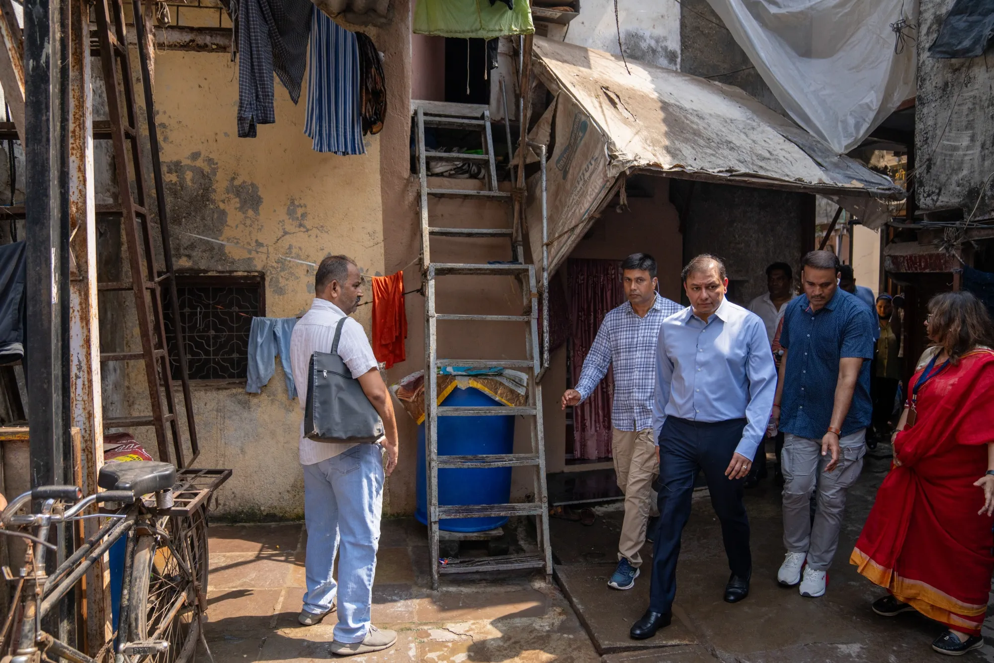 阿達尼企業董事普拉納夫·阿達尼(左三)在5月訪問孟買達拉維貧民窟時的現場照片。攝影師:蘇米特·達亞爾/彭博社“我們接受印度有大企業,但我們不接受他們是唯一有發言權的人,”國大黨高級領導人拉胡爾·甘地在週一的新聞發佈會上説。