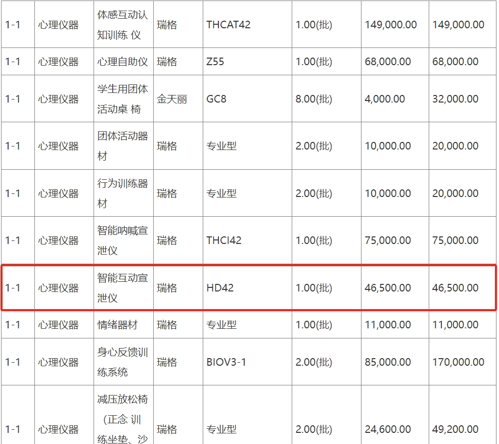 斯基查了廣州市鐵一中學公示的2022年度心理輔導中心購置經費,裏面還真有一款“智能互動宣泄儀”。