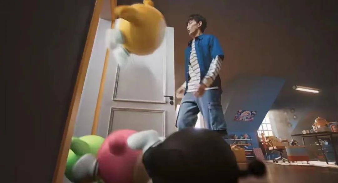 值得注意的是,品牌符號的存在,是為了進一步增進用户認知,拉近與產品的情感距離。也因此,用户會自發地為「蛋仔天團」打造二創內容,借力社會化傳播傳遞品牌認知,實現情感上的雙向奔赴。基於互相給予和滿足,一些微妙情緒更好地被用户捕捉到。一個鮮明的案例是,在另一則TVC中,代言人吳磊抽走蛋小黑腳底的積木組件,引發了海量用户爭相二創解讀,為「蛋仔天團」打造了一場表情包「情景劇」,把對蛋仔的「人設消費」推向了聚光燈之下。