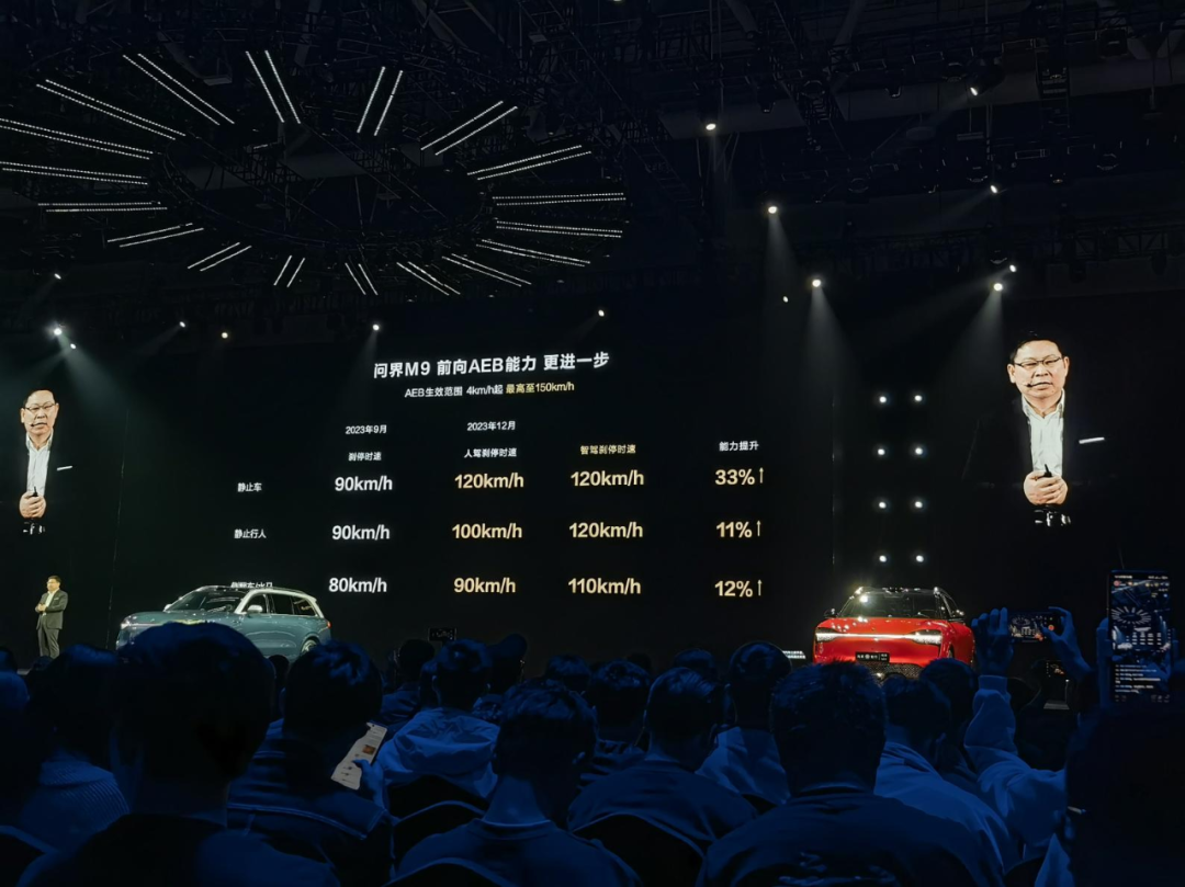 華為問界M9發佈會上,餘承東展示的一組數據顯示,問界M9對靜止車輛或行人的自動緊急剎停,在9月就能做到90公里/小時,到12月進一步提升到了120公里/小時。這意味着問界M9在最高時速120公里時識別到障礙物能做出迅速的剎停反應,這也能有效地緩解王傳福的模擬車禍現場的工作量擔憂。