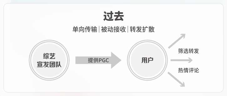 傳統綜藝宣發邏輯,是宣發團隊專注製造PGC讓用户擴散的單向傳播,然而中心化的輸出與分發之下,宣發團隊自以為的“爆點”是不是真的戳中用户興趣?是否真正觸達潛在用户?是否讓路人轉粉?都是未知數。