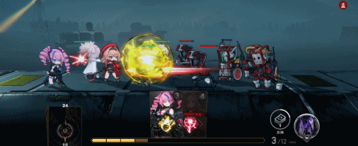 遊戲的戰鬥系統也有一定特色,隊員們化身小人衝上前去,你則打出卡牌指揮他們行動。每位隊員配置的卡牌效果是不同的,合理搭配可以產生1+1大於2的效果。諸如,有的人可以引來雷電,產生電氣場地,有的人則可以藉助電場一波爆發帶走敵人。