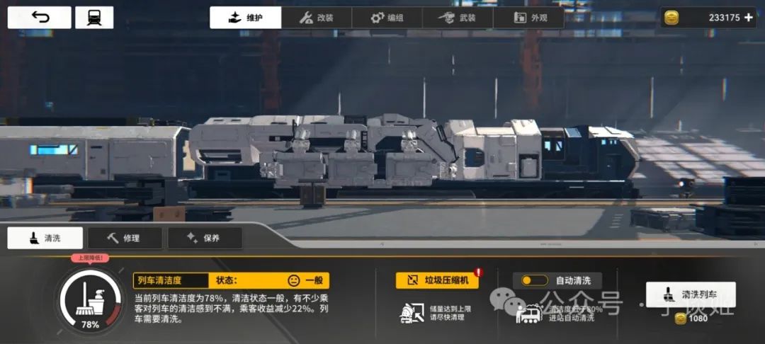 你可以改裝自己的火車,可以加裝火車配件,可以增加更多車廂,可以提升火車動力,還可以改善化火車裏的各種設施,比如換上更柔軟的椅子與牀,換上容量更大更智能的垃圾處理器等。