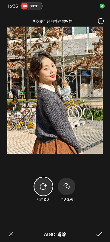 説真的這功能簡直就是為喜歡拍照的人做了一顆 “ 定心丸 ”,畫面裏有路人無所謂,AIGC 消除一下就乾淨了,你別説,效果還真可以,甚至有點驚豔到我: