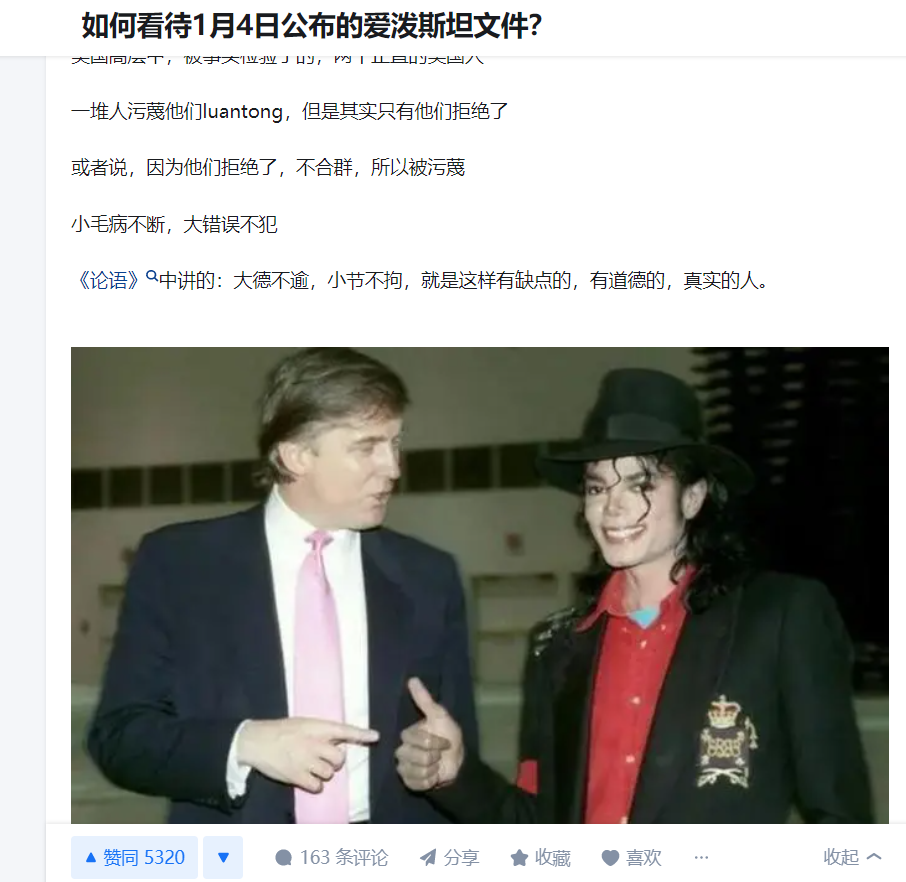 特別是特朗普,不僅被證明了清白,而且很多媒體還把特朗普和麥克傑克遜聯繫在了一起,説只有這倆沒戀童云云,還有一些説法是就因為邁克傑克遜不願意去蘿莉島搞蘿莉,所以才被某些人污衊戀童…….