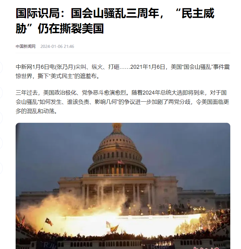 在2020年大選結束,特朗普落敗以後,就發生了特朗普支持者衝擊美國國會事件。這説明特朗普完全無法接受大選失敗。