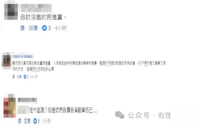 有網友在評論區留言痛批民進黨當局的做法**“自討沒趣”“無能無知可悲”“自導自演還翻車”。**