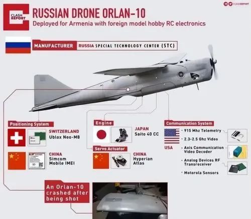 坦克、步兵戰車,全部換裝清一色的法國“松樹-U”或者“凱瑟琳”熱成像儀,蘇-34用民用GPS導航,新一代“阿瑪塔”坦克仿製德國保時捷的發動機,因技術不達標,無法量產。卡瑪茲K-5卡車使用美國康明斯的發動機,最誇張的是,“海鷹-10”戰術無人機,核心零部件全部來自於西方。攝像頭是日本佳能的,GPS模塊從瑞士進口,信號接收模塊是德國的,汽油發動機也是日本的。