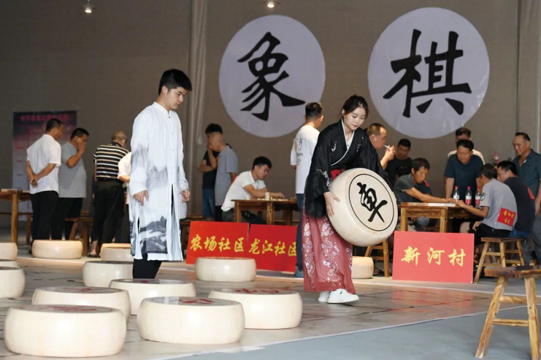 2023年8月19日,湖南嶽陽。中國象棋愛好者身着古裝體驗巨型象棋對弈。(圖/視覺中國)