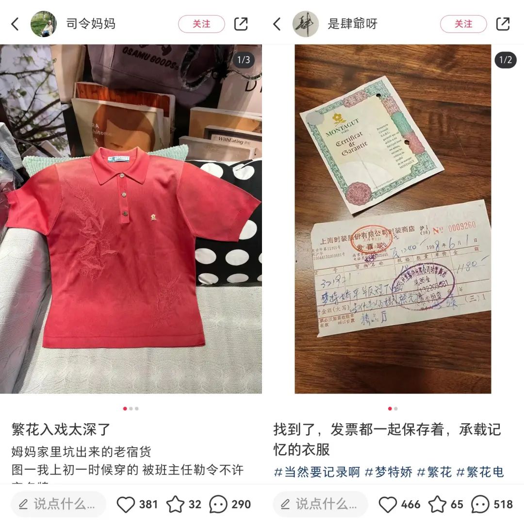 作為三羊牌的“對家”,夢特嬌在《繁花》的第四集靠着“亮絲T恤” 出場,一朵花的品牌標誌更是佔據了不小的畫面,引得不少網友在家裏翻箱倒櫃,找出父母那輩購買的夢特嬌POLO衫,然後在小紅書、微博和抖音等社交平台上發出帖子。