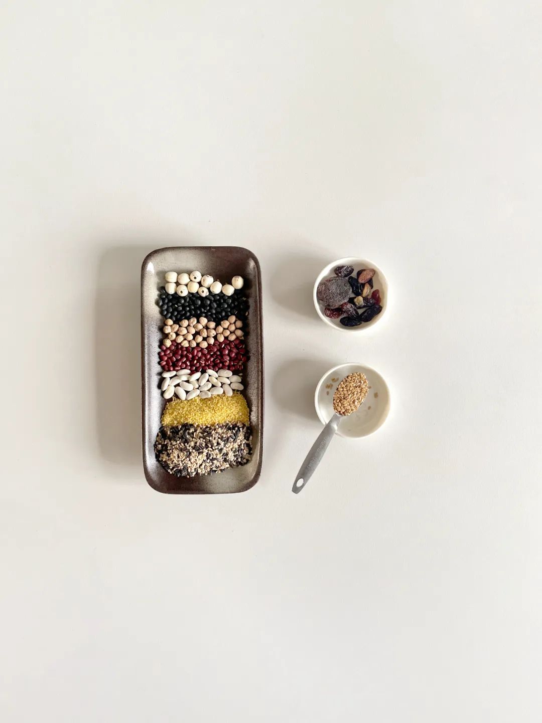 我放了這4種豆子(黑豆、鷹嘴豆、赤豆、小白芸豆)、3種穀物(小米、黑米、鋼切燕麥米),另外還有蓮子。