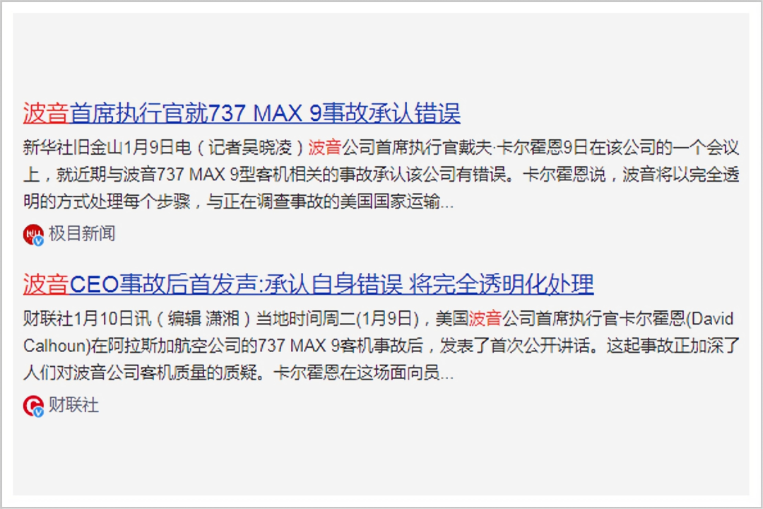 這次出了事故,大衞·卡爾霍恩(David Calhoun)在一個會議上,就近期與波音737 MAX 9型客機相關的事故承認該公司有錯誤。