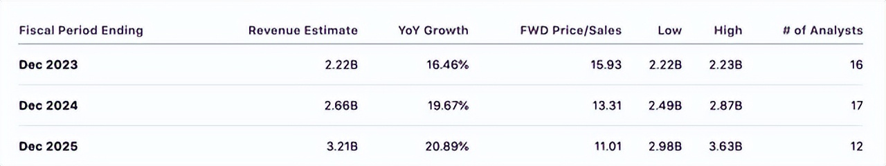 分析師普遍預測 Palantir 在未來幾年將難以實現 20% 的收入增長。Anthropic 正忙於在一年內從幾乎沒有收入增加到 10 億美元,而 Palantir 預計在 22 億美元的收入基礎上,到 2024 年只會增加 4.4 億美元的收入。
