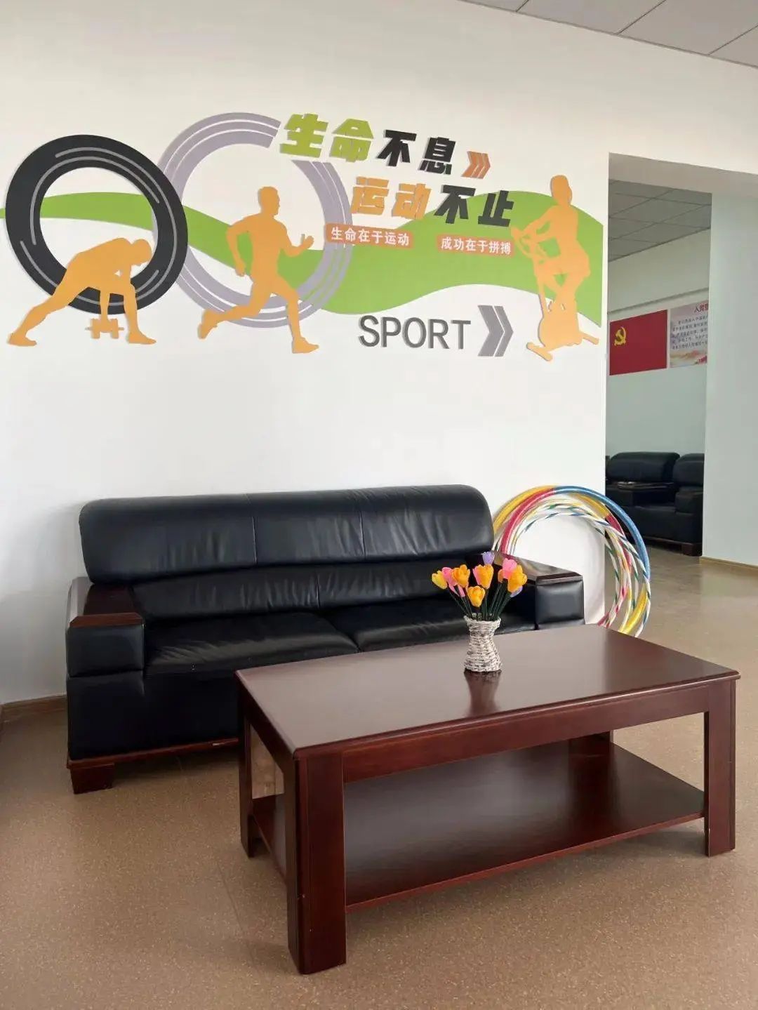 泉州市第三醫院“醫生休息室”把“生命不息、運動不止”貼上牆。大Logo下面就是呼啦圈,很勵志了。