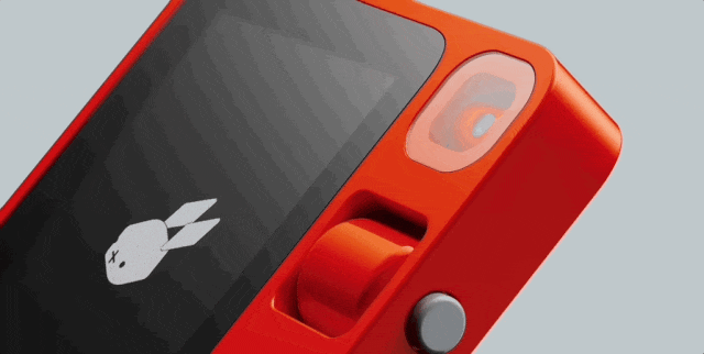 在這屆CES上,有一個華人團隊,老闆是之前做智能音箱被百度收購的呂騁,他們推出了一款產品,叫Rabbit R1。就是這麼一個小盒子,一塊小屏幕,一個旋鈕控制可轉向的攝像頭,邊上有一個用來喚醒它跟它説話的按鈕,乍看之下很像前段時間蘋果離職高管搞的那個AIpin。