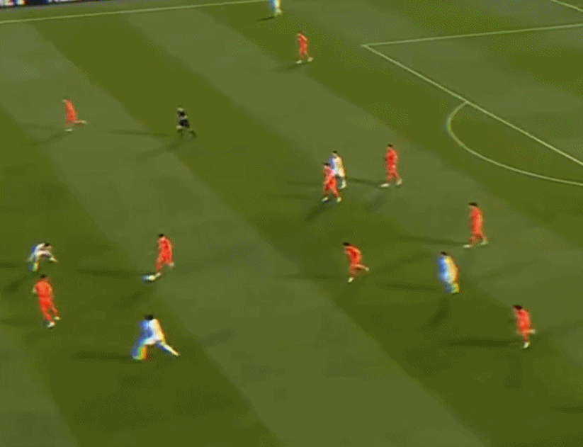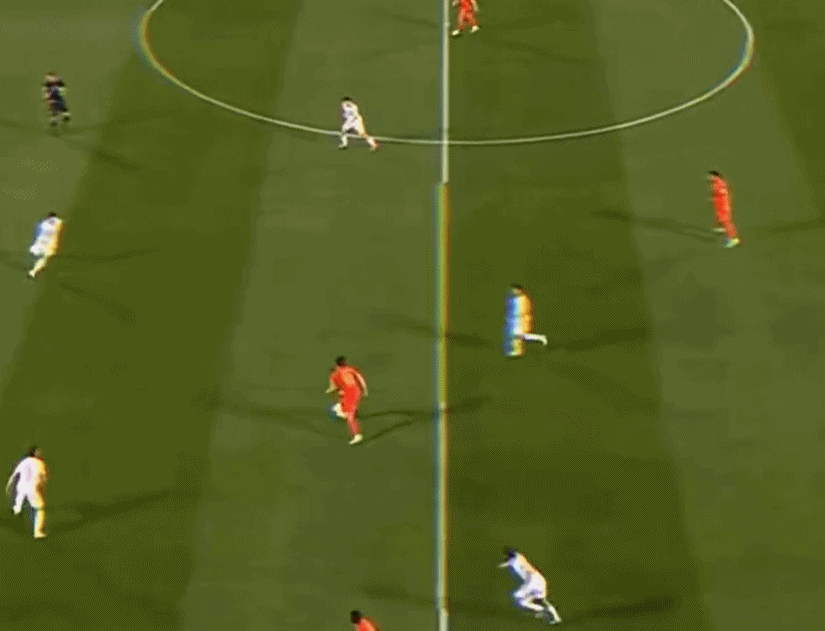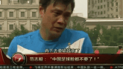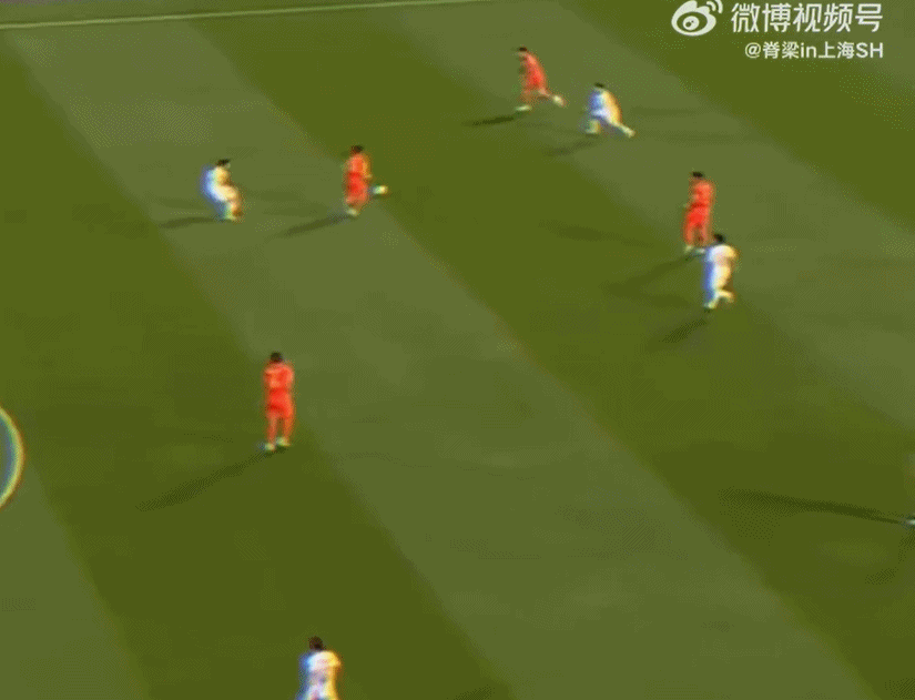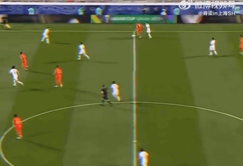 一邊是慢悠悠去接球結果沒接到隊友傳球的國足球員