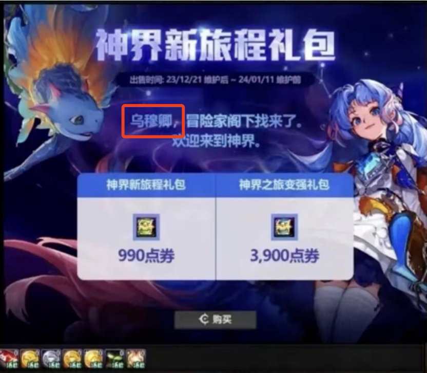 伴隨着 2023 年 12 月份的版本更新,玩家發現在新版本的活動禮包裏,出現了 “ 烏穆卿 ” 三個字。
