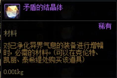 在現實中,人類選擇了黃金作為一般等價物。而在 DNF 中,也存在着一般等價物,那就是一個叫做 “ 矛盾的結晶體 ” 的道具,其主要作用是增幅道具,説白了就是用來提升玩家數值的。