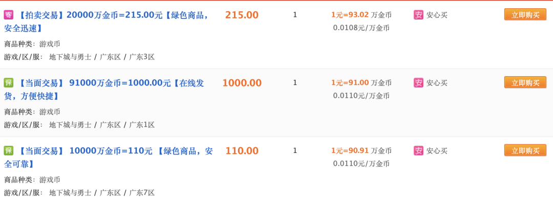 就是因為這個向來穩定的經濟系統,有不少人在遊戲裏 “ 搬磚 ” ,把刷副本獲得的金幣出售,在遊戲內換取代幣券,或者通過遊戲外的第三方直接換成人民幣。