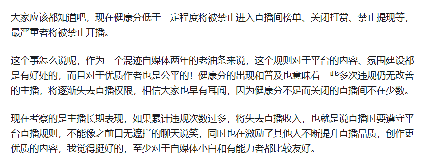 可以説,抖音的健康分制度落地,意味着新一輪監管將要開始,而這也意味着直播行業再度來到了變革的“十字路口”。