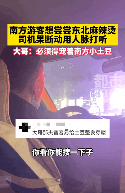 有遊客向司機師傅打聽哪裏的東北麻辣燙好吃,司機師傅不瞭解,馬上打給朋友。