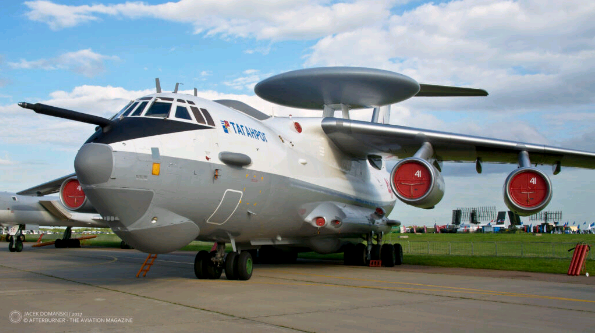俄空天軍的A-50預警機以伊爾-76預警機為平台,搭載的大功率機械掃描雷達探測範圍為低空450公里、高空620公里,能同時跟蹤50個目標,指揮12架戰鬥機作戰。據稱最新改進型A-50U預警機已經換裝了有源相控陣雷達,強化對隱形目標的探測能力,探測範圍也有大幅提升。但目前尚不確認被擊落的A-50具體型號。