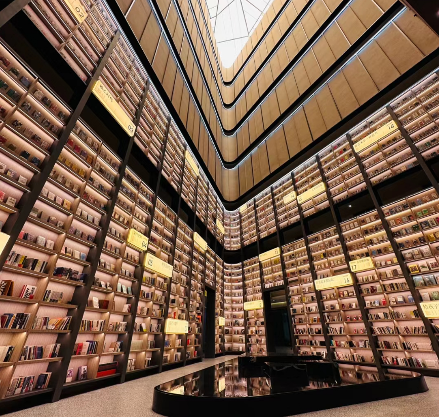 憑藉着一樓大廳的圖書館,亞朵成為了西安大雁塔隔壁的一個網紅打卡點。