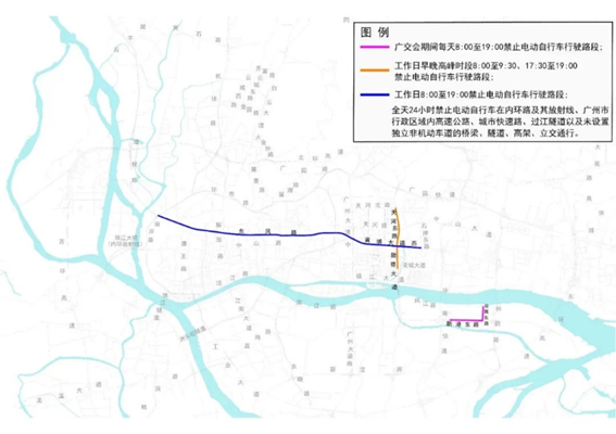 2023年12月15日,廣州市電動自行車通行管理措施正式實施,限行路段集中在人流量較大的市中心,限行時間從早晚高峯到全天24小時不等。