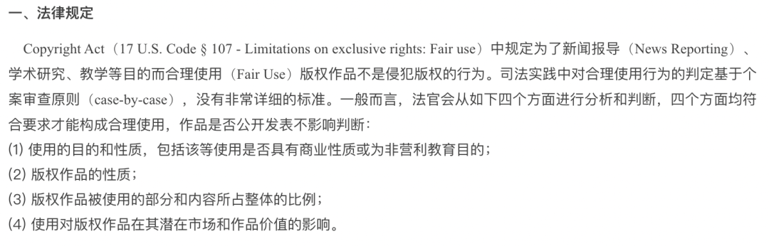 一個是訓練數據,在 OpenAI 看來,使用網上公開的資料訓練大模型屬於版權法中 “ 合理使用” 的範疇。
