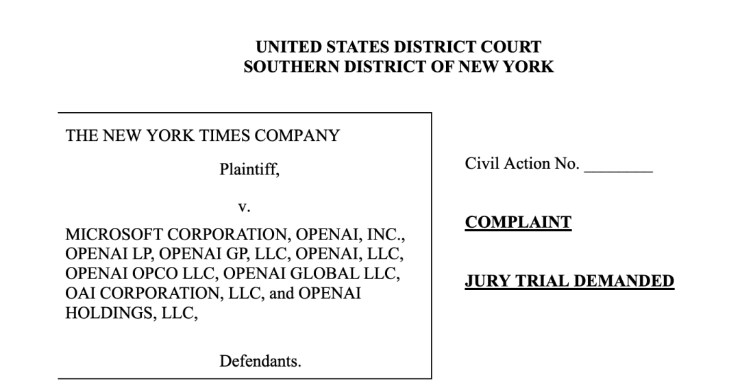 去年年底,紐約時報突然向法院起訴微軟和 OpenAI ,給他們安的罪名是大模型侵犯了紐約時報的文章版權。
