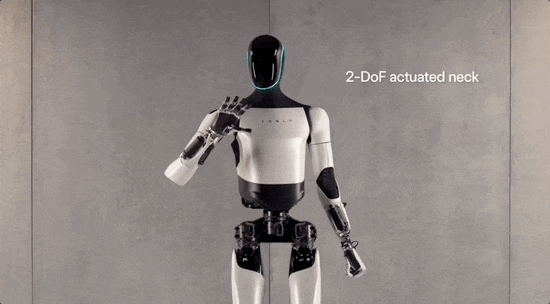 除了手部以外,Optimus的頸部也進行了全新改版,採用鉸接式結構,擁有兩個自由度。