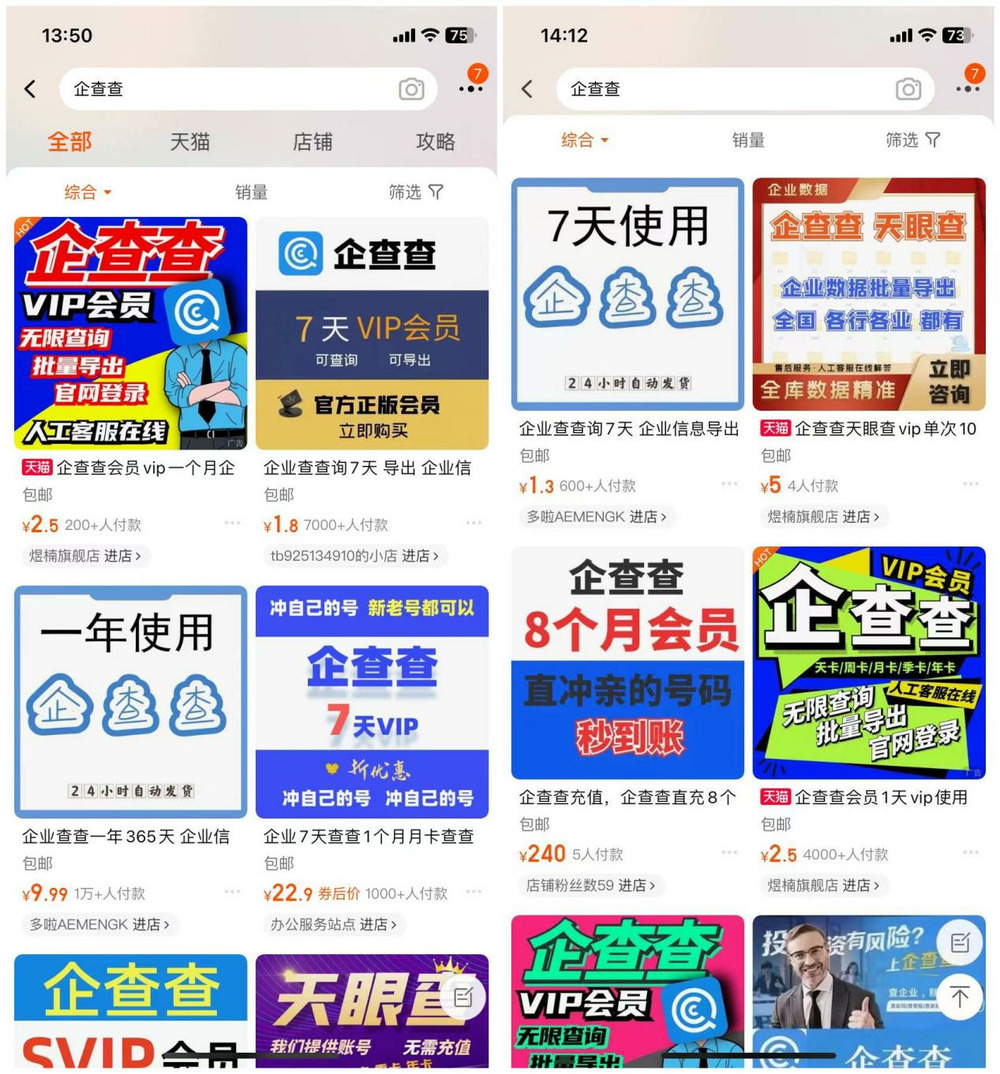 核心用户人羣不足下,啓信寶、企查查、天眼查三家的同質化競爭,讓用户更是遭到強分流。而且電商網站平台售賣的7天、30天低價會員,也將有臨時需求用户截流。如求職者求職期間,為避免踩坑,且考慮到求職時間不長,本能地會考慮去電商網站購買這些時間較短的低價會員。