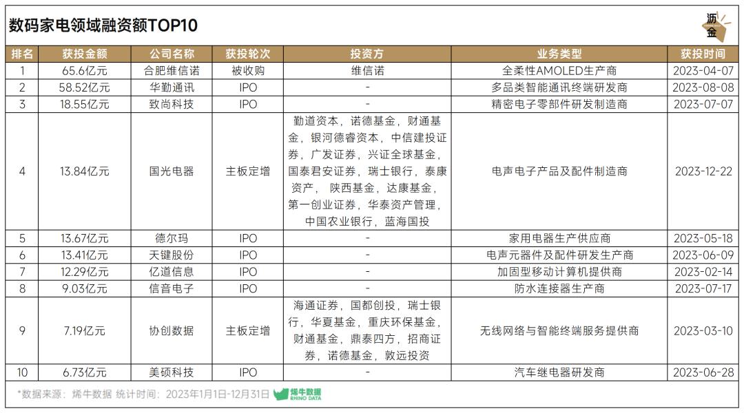 數碼家電領域所獲投資額TOP10裏有7家均是完成IPO成功上市,且上榜企業均是超億元大額融資。