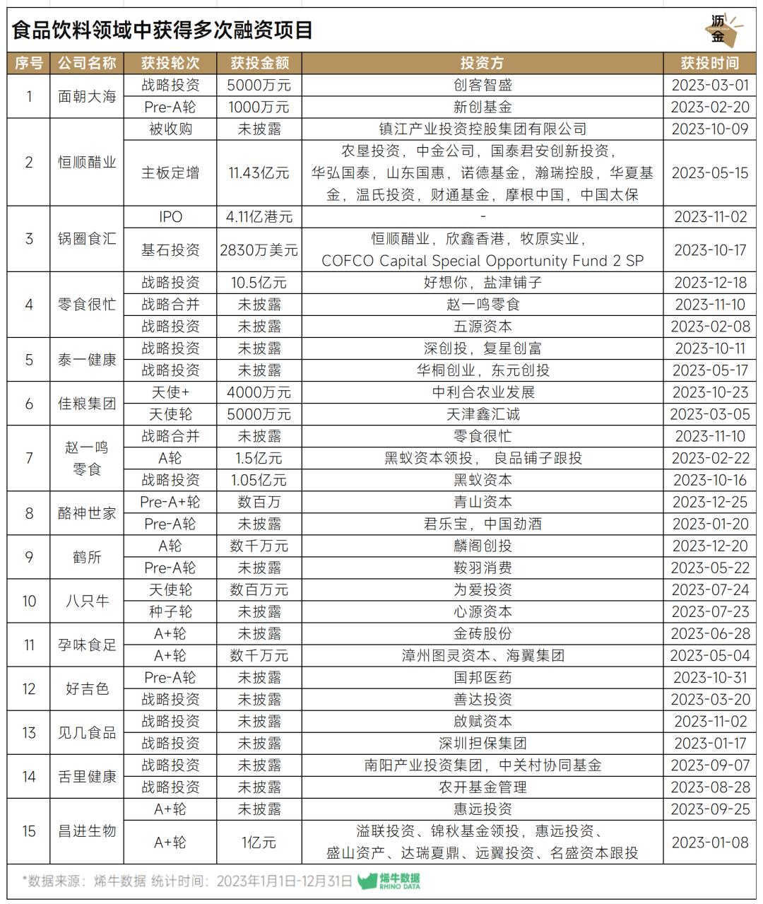 另外,食品領域中與健康、調味品及預製菜相關的項目備受資本青睞,而奶酪、孕產膳食等細分賽道也得到資本關注。