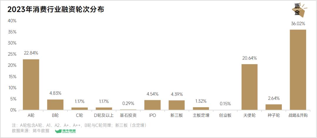 而天使輪、A輪融資合計佔比超過40%,説明投資人、機構對消費領域的許多早期項目仍有信心,看好企業因新興市場、創新產品或服務帶來的高增長潛力。